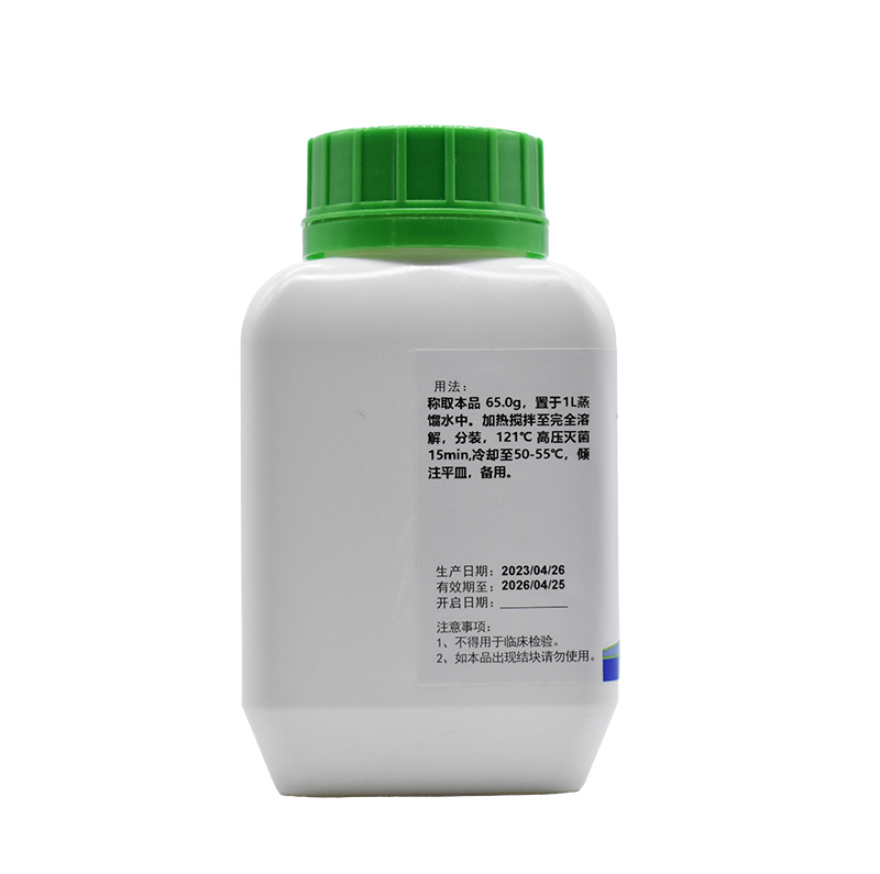 2、培養(yǎng)基應(yīng)置于避光、干燥處保存,使用后應(yīng)立即旋緊瓶蓋,以免吸潮結(jié)塊。