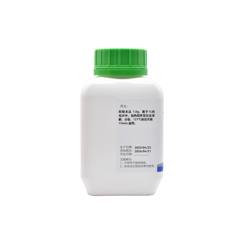 2、培養(yǎng)基應(yīng)置于避光、干燥處保存,使用后應(yīng)立即旋緊瓶蓋,以免吸潮結(jié)塊。