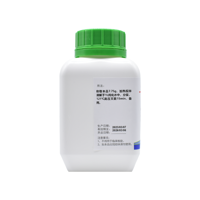 2、培養(yǎng)基應(yīng)置于避光、干燥處保存,使用后應(yīng)立即旋緊瓶蓋,以免吸潮結(jié)塊。