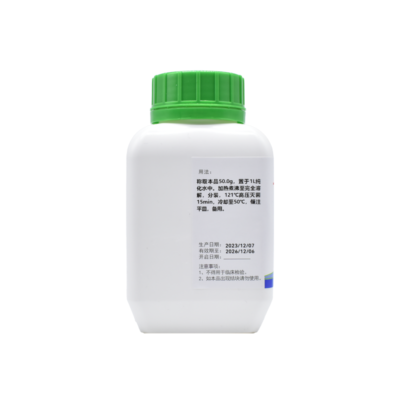 稱取本品50.0g,置于1L純化水中。加熱攪拌至完全溶解,分裝,121℃高壓滅菌15分鐘,冷卻至50℃,傾注平皿,備用。