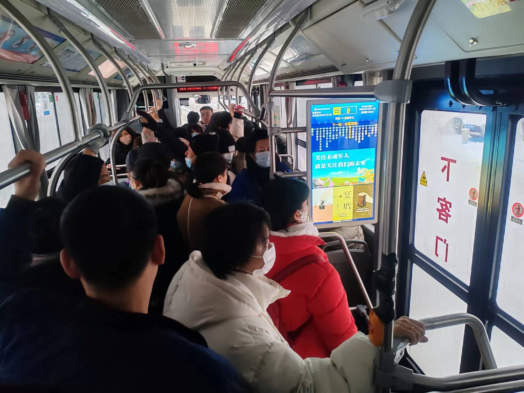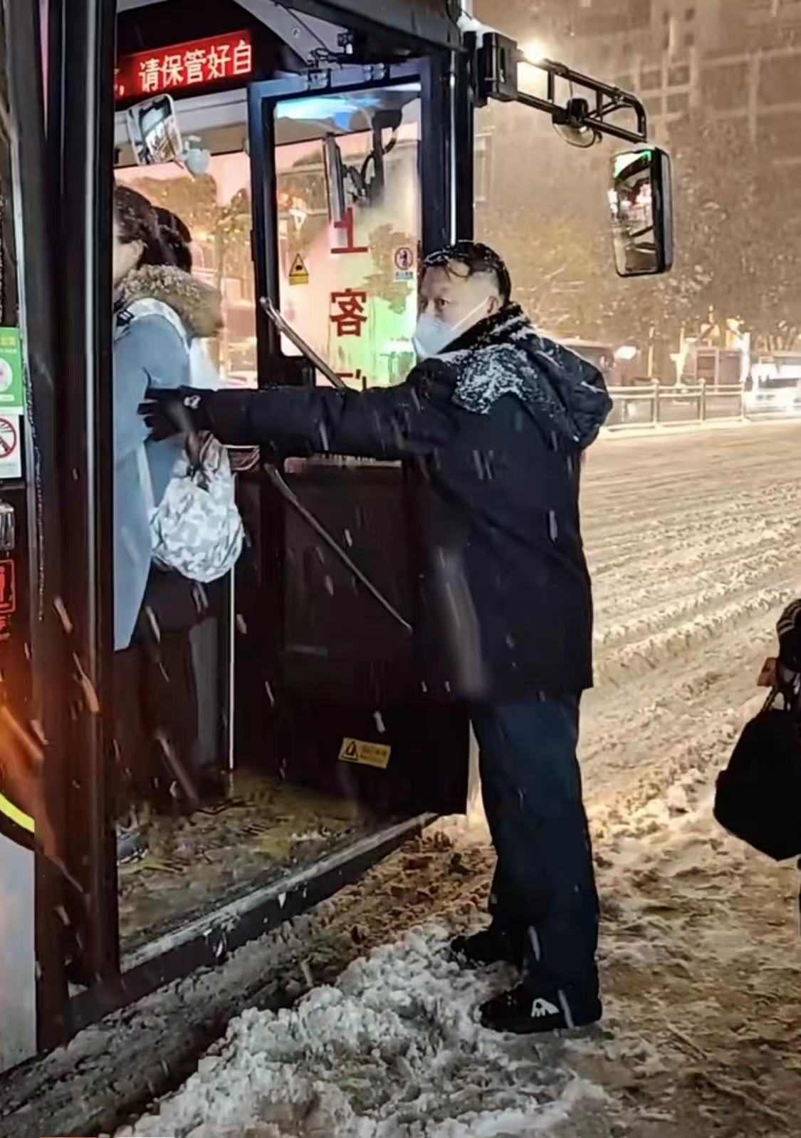 “2路車馬上就要進(jìn)站了,上車的乘客請(qǐng)?zhí)崆白龊脺?zhǔn)備,不要擁擠,腳下路滑注意安全”“大爺別著急,我扶您上車”“上車人多請(qǐng)大家互相照顧一下,門口的乘客請(qǐng)向車廂里邊走” ……公交人以雪為令,見雪上崗,早晚高峰時(shí)段,在市區(qū)主要公交站點(diǎn)疏導(dǎo)乘客,以一個(gè)個(gè)逆行轉(zhuǎn)身彰顯風(fēng)雪嚴(yán)寒中的公交擔(dān)當(dāng)。