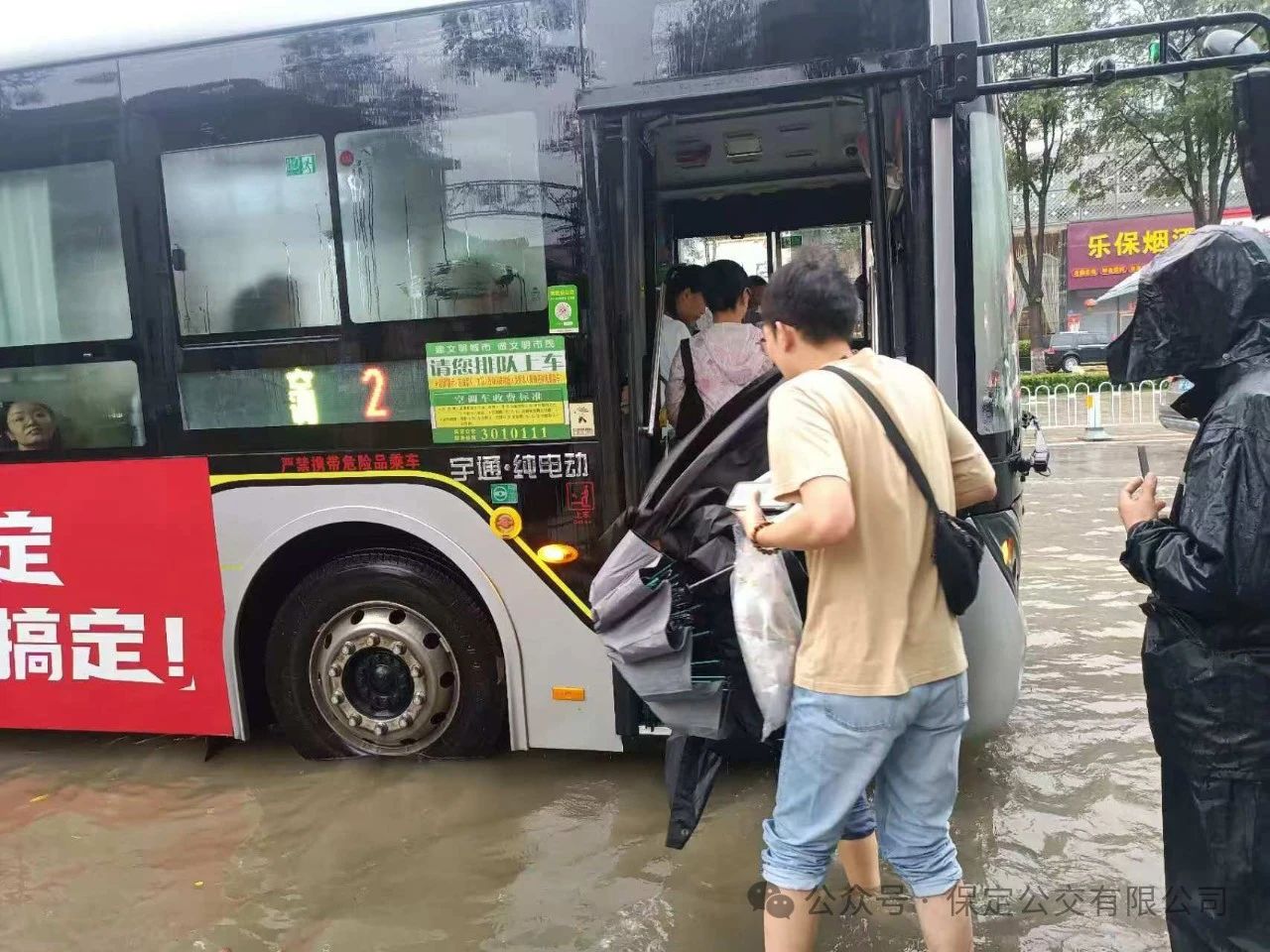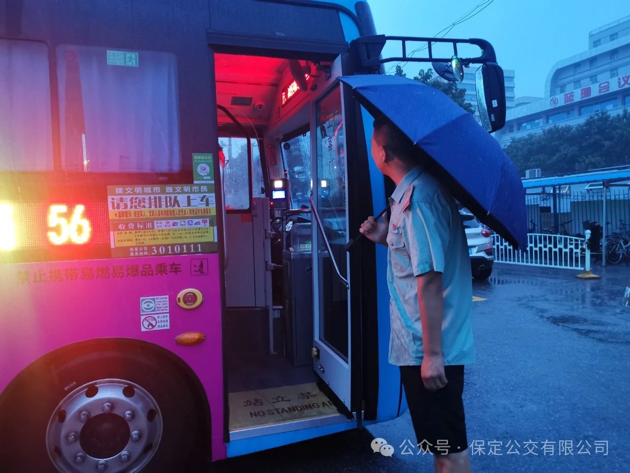 8月25至26日,一場大雨突襲保定古城,保定公交全力應(yīng)對,提前啟動防汛應(yīng)急預(yù)案,黨委書記、董事長陳立軍親臨一線調(diào)度指揮,全力保障市民百姓公交出行。26日清晨,管理人員各就各位深入積水路段勘察道路通行情況,并將信息及時報送至微信群,做到信息互通、準(zhǔn)確、及時;信息管理中心調(diào)度大廳按照汛期安全生產(chǎn)指揮部要求,監(jiān)控、指導(dǎo)各營運(yùn)單位調(diào)度;各基層營運(yùn)公司全運(yùn)力輸出,根據(jù)道路通行及場站積水情況,及時調(diào)整運(yùn)力,保障線路運(yùn)營;駕駛員們風(fēng)雨無阻,蹚著及膝的積水按時到崗,認(rèn)真檢查車輛設(shè)施,準(zhǔn)點(diǎn)發(fā)車,在風(fēng)雨中破浪前行;在保定東站,30余臺擺渡車免費(fèi)運(yùn)送旅客8000余人次……公交人用實際行動詮釋責(zé)任擔(dān)當(dāng),用風(fēng)雨中的堅守傳遞溫暖的力量。