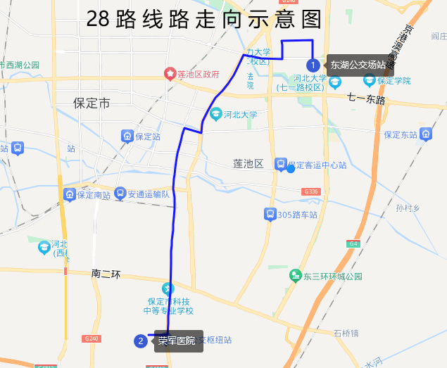 28路調(diào)整至東湖公交場站發(fā)車,走向調(diào)整為文博街、德寧路、創(chuàng)新街、復(fù)興路、長城大街、東風(fēng)路、蓮池大街、榮軍路。