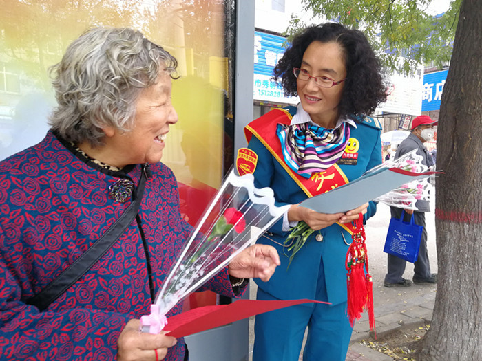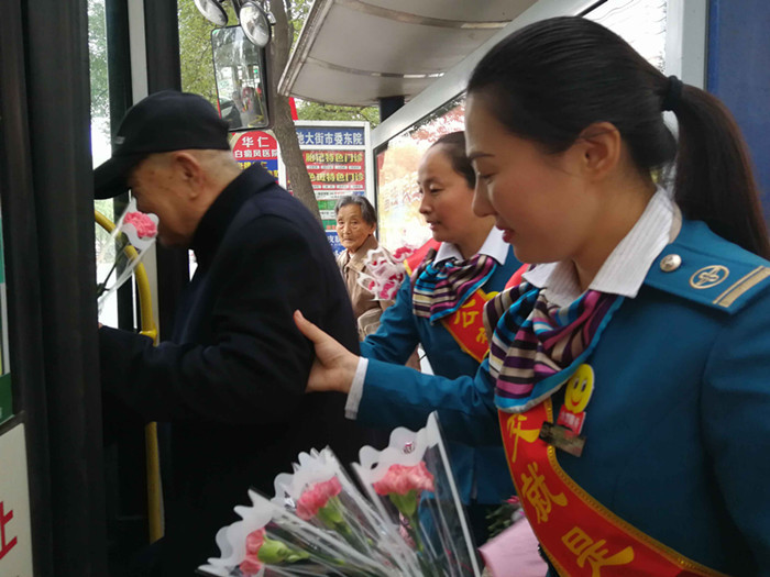 “大爺,您慢點(diǎn),我來扶您上車”“大媽,您好!我們是4路線的駕駛員,今天是重陽(yáng)節(jié),送您一枝康乃馨,祝您身體健康萬事如意!”“謝謝您給老人讓個(gè)座,送您一個(gè)中國(guó)結(jié),感謝您給大家傳遞的正能量。”“阿姨,這是老年人乘車安全指南,請(qǐng)您看一看”......活動(dòng)中,駕駛員們溫暖的話語(yǔ)、真情的服務(wù)、濃濃的關(guān)愛讓老人們很受感動(dòng),同時(shí),也讓年輕人深有感觸,有的乘客主動(dòng)給老年人讓座,有的乘客不知道今天是重陽(yáng)節(jié),在聽到駕駛員送給老人的祝福后,紛紛表示要趕緊給爸媽打個(gè)祝福的電話。