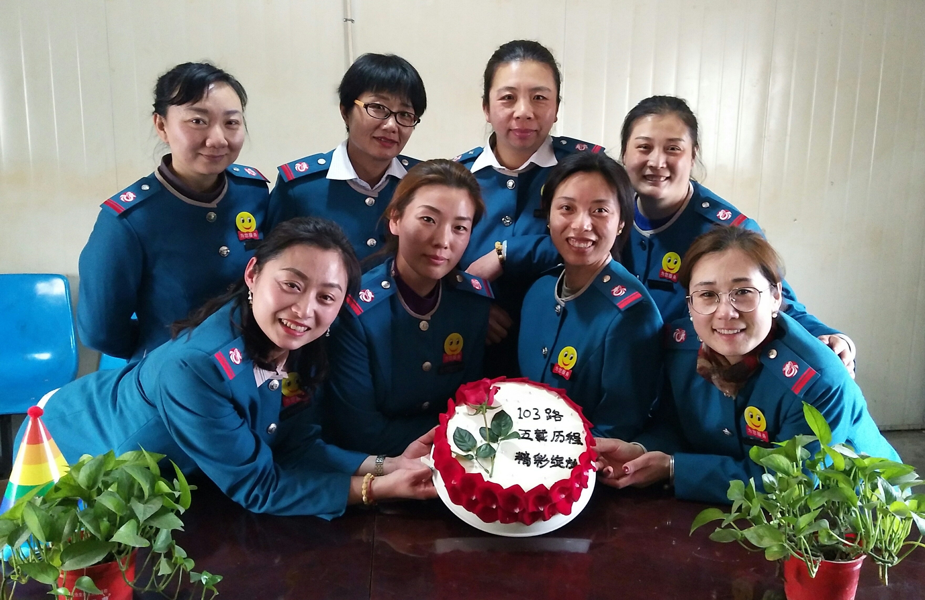 時(shí)代在發(fā)展,社會(huì)在進(jìn)步。103路的姐妹們深知只有不斷的學(xué)習(xí)、提升,才能“百尺竿頭更進(jìn)一步”,只有掌握了精湛的技藝,才能更好為乘客服務(wù)。她們立足十米車廂,用“敬業(yè)、兢業(yè)和精業(yè)”激勵(lì)著自己不斷提高、不斷進(jìn)步。為了給乘客提供更優(yōu)質(zhì)的服務(wù),她們組織微笑服務(wù)、禮儀服務(wù)、普通話、英啞語(yǔ)的培訓(xùn),業(yè)余時(shí)間了解掌握地理環(huán)境,當(dāng)好乘客的“活地圖”;為使車輛技術(shù)狀況保持完好,始終做到勤觀察、勤檢查、勤維護(hù);為了提高駕駛技能,在操作臺(tái)上放置一瓶礦泉水,在日復(fù)一日的勤學(xué)苦練中,駕駛技術(shù)得到了不斷提升。五年來,在姐妹們的共同努力下,103路安全行駛里程超過180萬公里,這也是103路安全行車無事故最好的見證?!耙换í?dú)放不是春,百花齊放春滿園”、“眾人拾柴火焰高”也是縈繞在每個(gè)103路駕駛員心中的信念,她們注重班組文化建設(shè),自我加壓、自我約束、自我提升,努力打造服務(wù)型、智慧型團(tuán)隊(duì)。為提高線路整體服務(wù)水平,姐妹們對(duì)自己的服務(wù)一日一回顧,一周一小結(jié),一月一總結(jié),不斷創(chuàng)新服務(wù)方式。同時(shí)姐妹們自發(fā)組成經(jīng)驗(yàn)交流小組,在交流學(xué)習(xí)中,同事關(guān)系變得更加密切,而且增強(qiáng)了團(tuán)隊(duì)凝聚力。