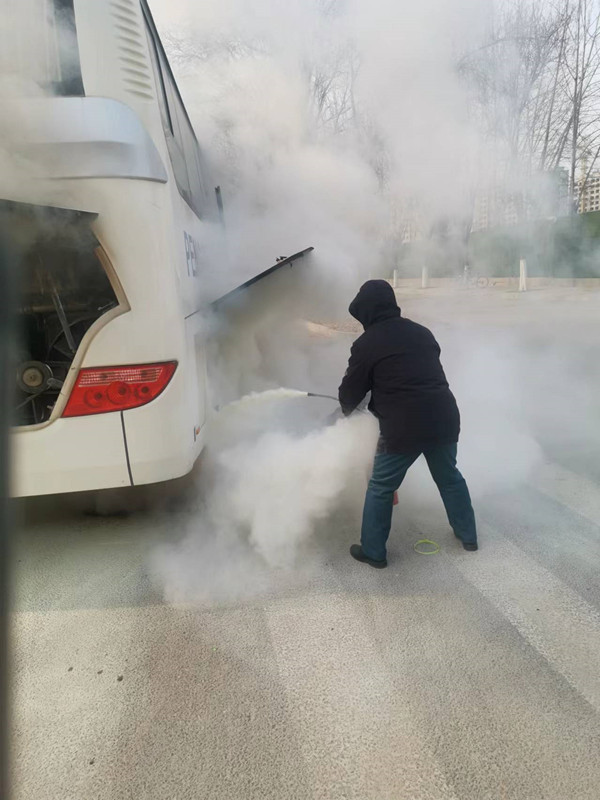 整個(gè)滅火過(guò)程用了僅僅不到5分鐘的時(shí)間。公交人通過(guò)平時(shí)掌握的專業(yè)知識(shí)和救火常識(shí),及時(shí)避免了一場(chǎng)更大事故的發(fā)生,將大巴車損失降到了最低?!艾F(xiàn)在想起當(dāng)初救火的情形還真有點(diǎn)后怕,尤其是看著突然躥出來(lái)的火苗,感覺(jué)馬上就要爆炸似的,但當(dāng)時(shí)也顧上不想其他的,就想著怎么趕快把火撲滅?!闭勂甬?dāng)時(shí)緊急的情況,施廣泉心有余悸地說(shuō)。