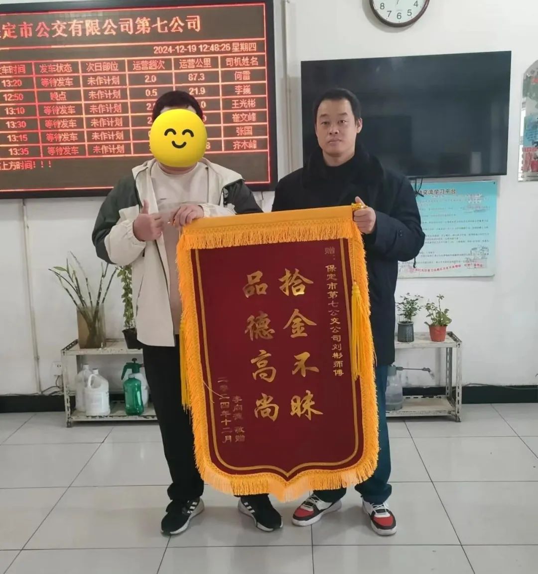 “真是太感謝了,那些東西太重要了,多虧了劉師傅!”12月19日,李先生特意來到公交七公司,等待運營歸來的29路駕駛員劉彬,親手將一面寫有“拾金不昧 品德高尚”的大紅錦旗交到劉師傅手中。
