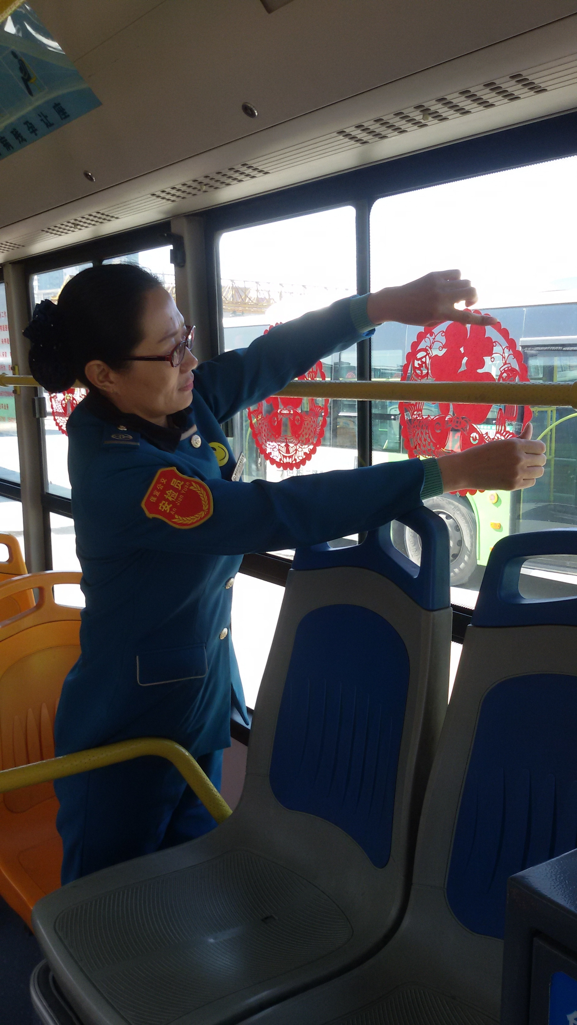 為了給乘客一個(gè)更加整潔的車廂環(huán)境,劉艷麗總是在工作之余清理車廂衛(wèi)生,下班后再多停留一會(huì)兒,直到清理干凈才放心離開。逢年過節(jié),她主動(dòng)向乘客問候,還在車內(nèi)張貼窗花,懸掛小飾物,把車廂扮美扮靚。