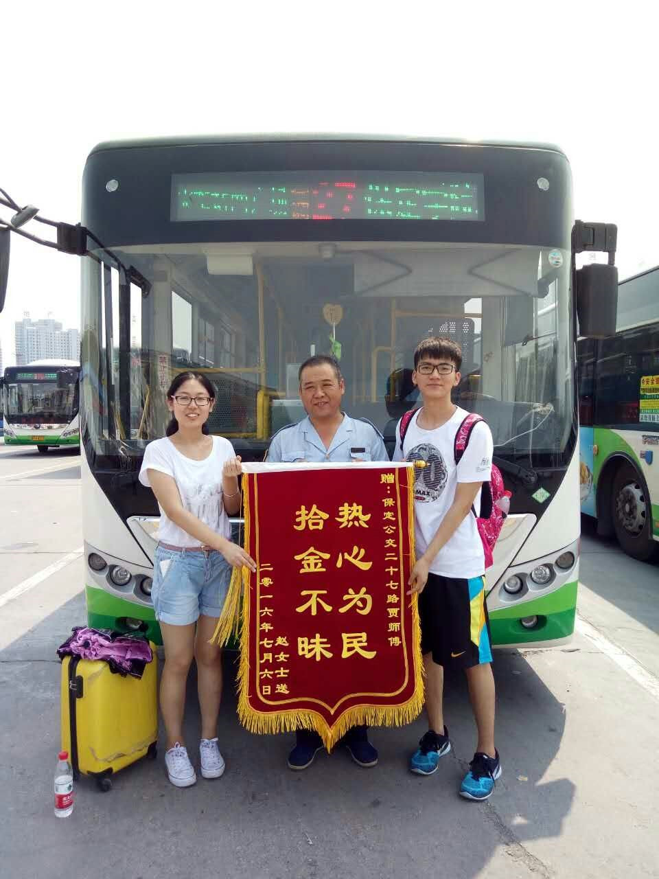 7月6日下午,河北大學(xué)的小趙同學(xué)放假前特意來(lái)到公交公司,將一面寫有“拾金不昧,熱心為民”的錦旗贈(zèng)送給27路駕駛員賈伏彪以表達(dá)自己的謝意。