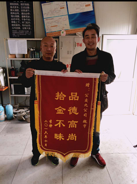 11月5日下午,乘客李先生將一面寫有“拾金不昧 品德高尚”的錦旗送到了公交九公司,表揚(yáng)拾金不昧的23路駕駛員魏宇。