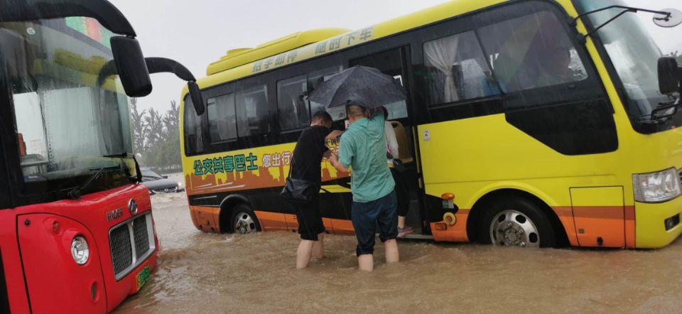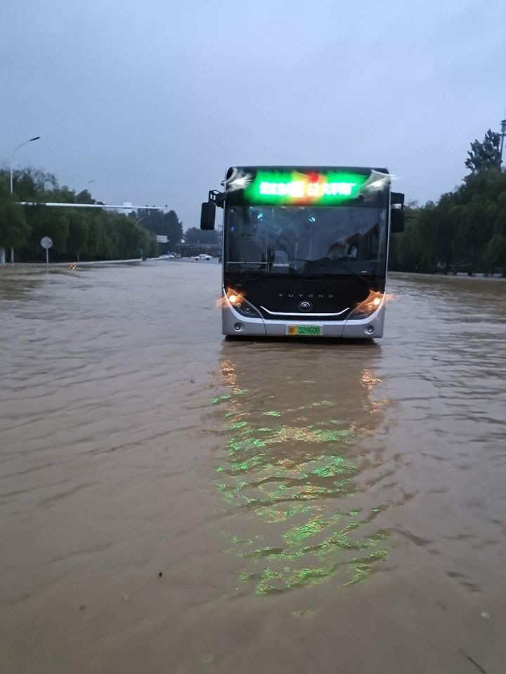 8月12日,一場大雨再次襲來,公交總公司按照應(yīng)急預(yù)案,在車輛、人員充分準(zhǔn)備的前提下,加強(qiáng)對通過地道橋及易積水路段營運(yùn)線路的動態(tài)監(jiān)控值守,總公司領(lǐng)導(dǎo)及各級管理人員第一時(shí)間實(shí)地勘察水情,上線指揮;稽查人員上線路到場站,叮囑駕駛員按規(guī)定操作,認(rèn)真觀察、謹(jǐn)慎通行、安全行駛;駕駛員及時(shí)反饋線路、客流情況,聽從統(tǒng)一調(diào)度,在全市大面積路堵,多個(gè)路段無法通行的情況下,保持良好心態(tài),耐心服務(wù)乘客,安全駕駛,保障市民出行;信息管理中心隨時(shí)關(guān)注雨情和線路動態(tài),根據(jù)反饋情況及時(shí)調(diào)整發(fā)車間隔,指揮繞行,把對市民出行的影響降至最低;汽車修理人員隨時(shí)待命,直到最后一臺公交車安全回到場站;905路車直接開進(jìn)廠區(qū),方便長城員工下班乘車;保定東站管理人員和職工連續(xù)七個(gè)小時(shí)站在水中,冒雨指揮來往車輛通行,直到晚上10點(diǎn)多……