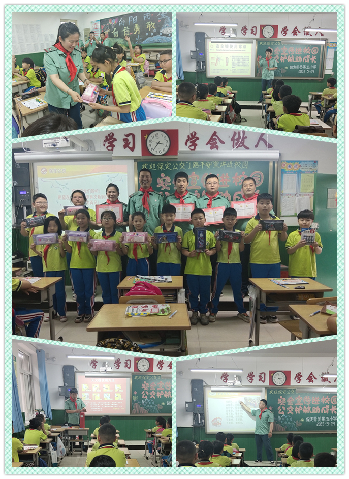 為提高中小學生的交通安全意識和自我防護能力,5月24日下午,由保定公交1路線駕駛員組成的“1路平安”宣講團到保定市冀英第五小學開展“公交安全進校園,文明乘車伴我行”宣傳教育活動,為40余名小學生上了一堂形象生動的安全教育課。